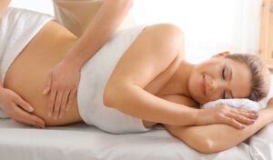 Young,Beautiful,Pregnant,Woman,Having,Massage,In,Spa,Salon
